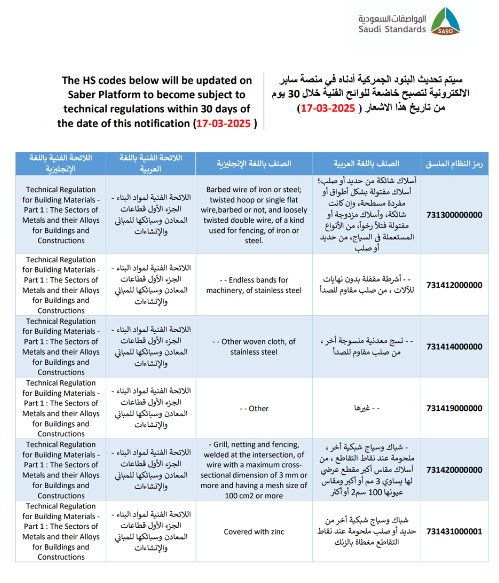 近日,沙特标准、计量和质量组织 SASO通过沙特SABER电子平台发布了一则通知,指出部分产品将在此通知发布日期30天内(即2025年4月17日)被加入管控列表。从生效日起,这些产品必须遵守相应技术法规的要求。